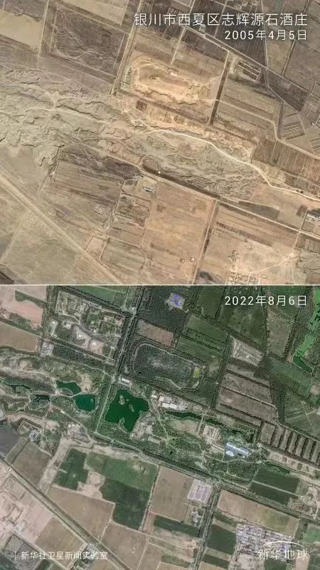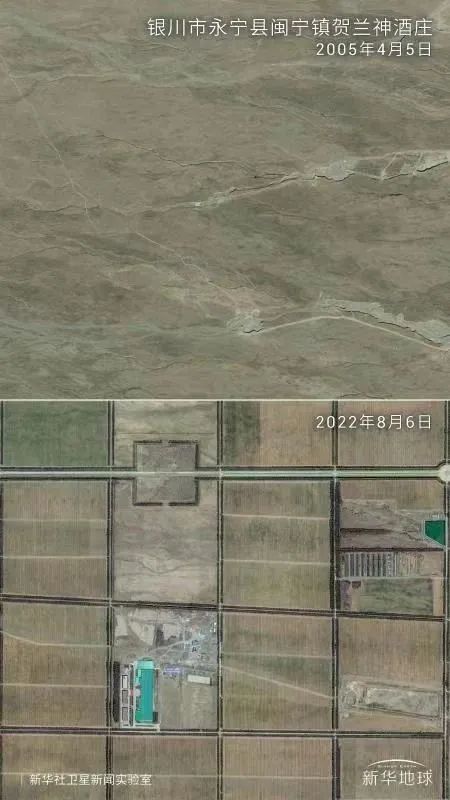 新华社北京6月8日电 宁夏贺兰山东麓位于北纬37度至39度,是世界公认的酿酒葡萄种植“黄金地带”。曾经遍布砾石的戈壁荒滩,如今变成草木葱郁的葡萄园。一座座散发着美学魅力的酒庄建筑、一条条现代化的葡萄酒生产线,合力打造出宁夏耀眼的“紫色名片”。借助卫星图片,可以更加直观地感受戈壁滩上孕育出的葡萄酒产业奇迹。